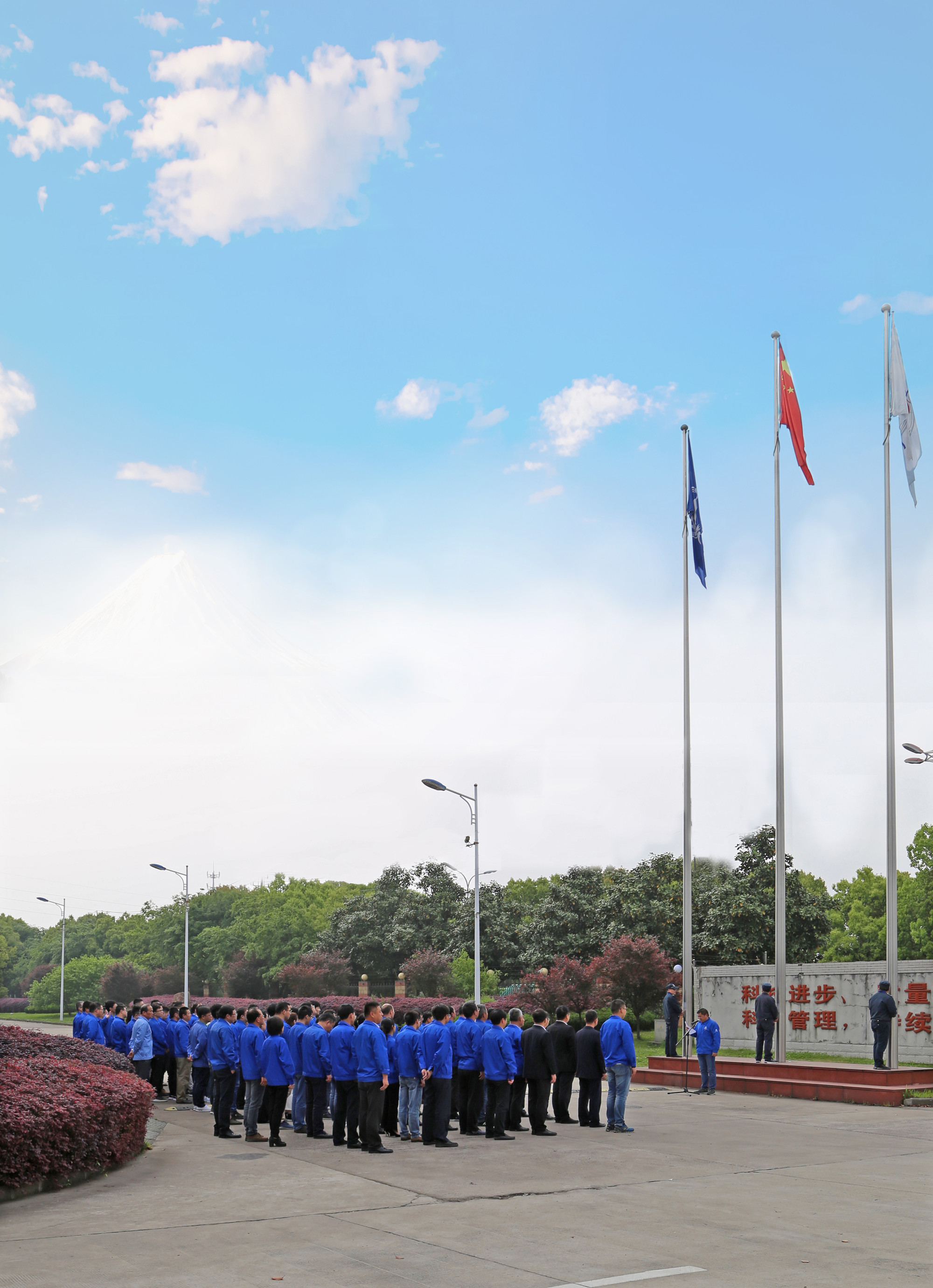 江蘇捷誠(chéng)領(lǐng)導(dǎo)班子、各車(chē)間部室負(fù)責(zé)人、各黨支部書(shū)記、工會(huì)和團(tuán)委代表、技術(shù)中心全體人員參加升旗儀式。當(dāng)雄壯有力的《義勇軍進(jìn)行曲》響徹整個(gè)廠(chǎng)區(qū),全體人員行注目禮,全場(chǎng)彌漫著一種莊嚴(yán)肅穆的氣息,鮮艷的五星紅旗冉冉升起,激發(fā)了全體干部職工不斷向上的斗志,點(diǎn)燃了大家強(qiáng)烈的愛(ài)國(guó)熱情。升旗儀式上,公司黨委號(hào)召全廠(chǎng)職工把愛(ài)國(guó)之志轉(zhuǎn)化為報(bào)效祖國(guó)的實(shí)際行動(dòng),為航天事業(yè)發(fā)展而奮斗。